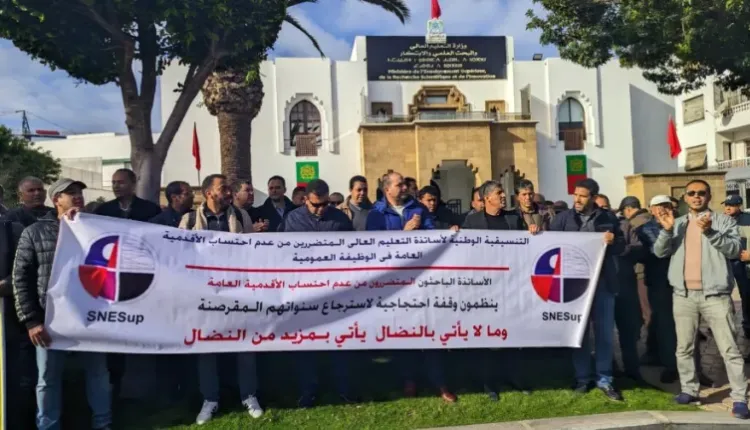 وتطالب هذه الفئة من أساتذة التعليم العالي، باحتساب الأقدمية للذين زاولوا مهنا أخرى في إطار الوظيفة العمومية قبل ولوجهم لمهنة أستاذ باحث بالتعليم العالي، والبالغ عددهم وفق أرقام التنسيقية 5 الاف أستاذ باحث.