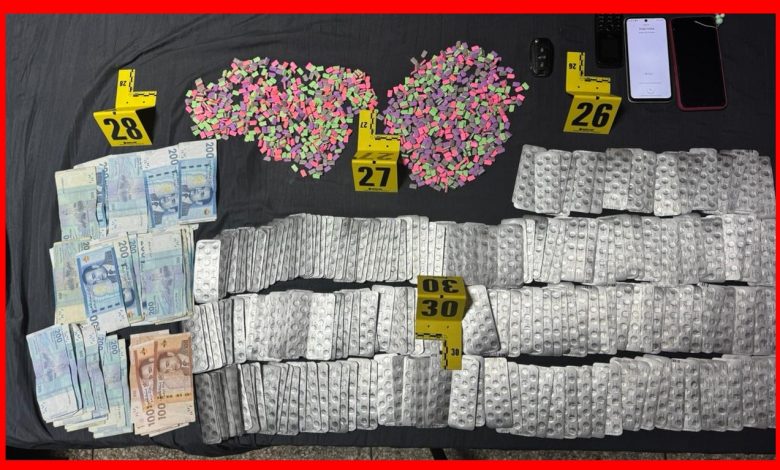 وكشفت مصادر أمنية، أنه قد جرى توقيف المشتبه بهم في عمليتين منفصلتين، حيث أسفرت العملية الأولى المنجزة بإحدى المناطق القروية بضواحي مدينة القنيطرة، عن توقيف شخص وسيدة متلبسين بحيازة 4180 قرص مخدر من أنواع مختلفة، علاوة على مبلغ مالي يشتبه في كونه من متحصلات هذا النشاط الإجرامي.