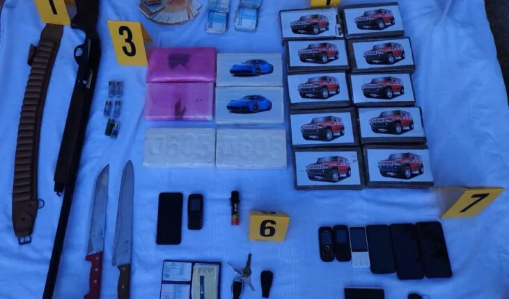 وعلاوة على هذه المواد المخدرة، أسفرت عمليات التفتيش عن حجز بندقية صيد ومجموعة من الخراطيش، علاوة على حجز أسلحة بيضاء وقنينة غاز مسيل للدموع و6 سيارات تحمل لوحات ترقيم وطنية وأجنبية ومبلغ مالي يشتبه في كونه من عائدات هذه الأنشطة الإجرامية.