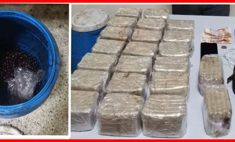 وقد جرى توقيف المشتبه فيه على مستوى المحطة الطرقية بمدينة فاس، من طرف عناصر الشرطة المذكورة أثناء وصوله إلى مدينة فاس قادماً من إحدى المدن المجاورة للمدينة ، حيث أسفرت عملية التفتيش المنجزة عن العثور بحوزته على 10 كلغ و 760 غرام من مخدر الشيرا عبارة عن 139 صفيحة، مخبأة بعناية داخل برميل بلاستيكي، بالإضافة إلى هاتف محمول، ومبلغ مالي يشتبه في كونه من عائدات هذا النشاط الإجرامي.