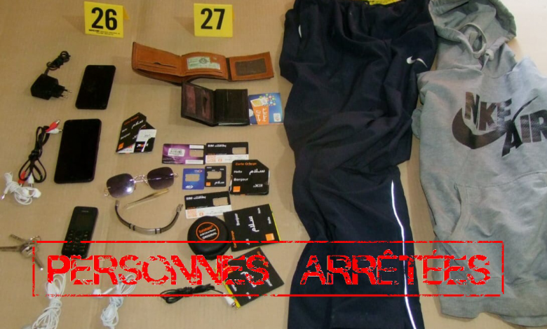 وقد أسفرت عملية التفتيش المنجزة بمنزل يستغله المشتبه فيهما عن حجز ملابس كانوا يرتدونها أثناء تنفيذ عملية سرقة كما هو موثق في إحدى التسجيلات المصورة، فضلا عن حجز صور لوثائق تعريفية في اسم الغير ونظارات شمسية، وكذا هاتفين محمولين ومجموعة من المعدات الإلكترونية التي يشتبه في كونهما من محصلات هذا النشاط الإجرامي.