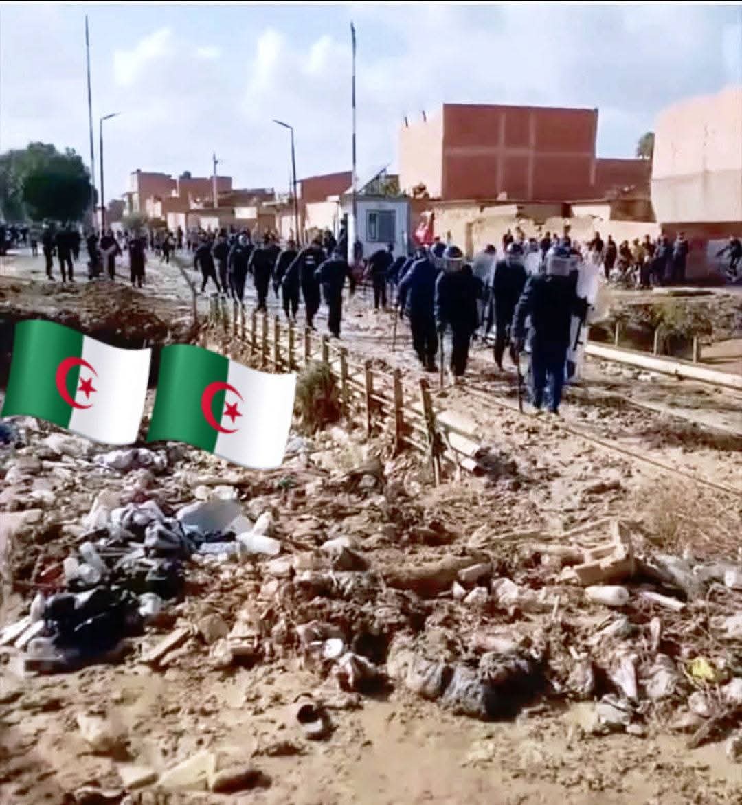 في مشهدٍ سريالي لا يحدث إلا في “جمهورية الشعارات الجوفاء”، وبدل أن تُسخر السلطات الجزائرية مروحياتها “السيخوي” وطائرات الإغاثة لانتشال العائلات المنكوبة وسط السيول، اختار النظام العسكري إرسال “قوات القمع” بملابس مكافحة الشغب وهراواتهم الغليظة لتطويق الضحايا المشردين فوق الركام.