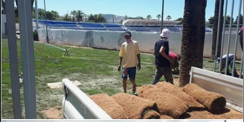 و بعد أن قامت الصفحات الاجتماعية بفضح عملية اقتلاع عشب الملعب بأكمله لأنه غير صالح لكي تلعب عليه مباراة كرة القدم،و العمل على تعويضه بعشب أخر سيكلف ميزاينة الجماعة ملايين إضافية لتهيئة الملعب مرة أخرى .